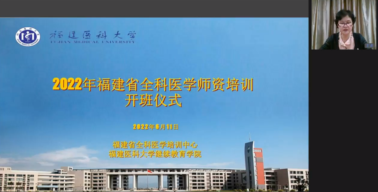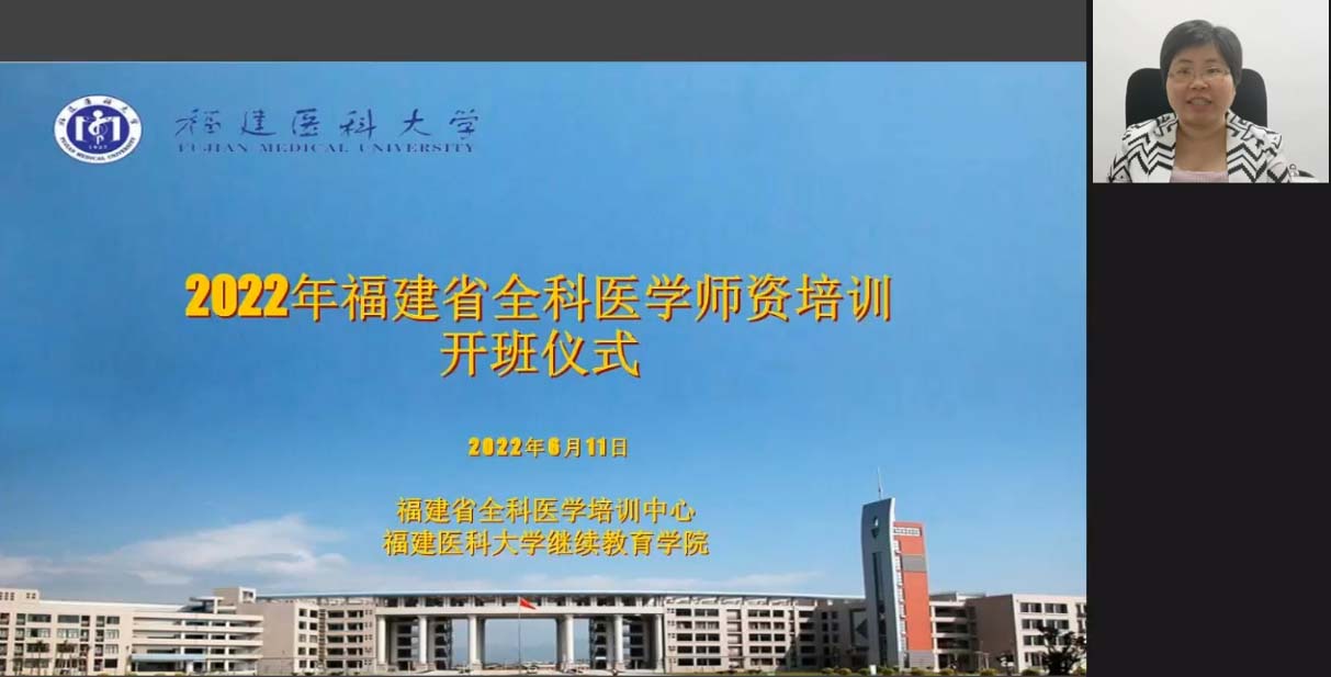 6月11日上午,2022年第1期福建省全科医学师资培训班顺利开班。培训班由挂靠我校福建省全科医学培训中心及我校继续教育学院主办。开班仪式上,福建省卫健委科教处罗瑜艳副处长在线致辞。
