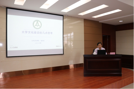 “没有高度的文化自信,没有文化的繁荣兴盛,就没有中华民族伟大复兴”。赵荣钦指出,在新时代必须把大学文化建设提升到新高度,使之与高水平医科大学建设的目标相匹配,并更好发挥育人功能。在讲述大学文化的基本概念、基本特征、基本功能,分析大学文化建设存在认识误区、实践缺陷的基础上,他提出要提高认识、理清思路,软硬兼顾、研学并重,科学设计、提高品味,努力挖掘大学文化内涵,建设高水平的有持久生命力的学院文化。