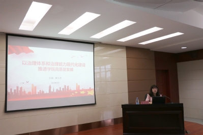 她为师生阐述了大学治理体系和治理能力现代化建设的具体要求,剖析了高质量发展的重大意义、推动高质量发展的重要经验,以及学校高质量发展的标准和要求,提出提升治理体系和治理能力现代化水平,推动学院高质量发展的几点建议。