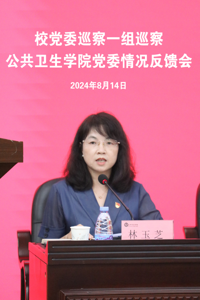 林玉芝代表公共卫生学院党委作表态发言。她表示,对巡察组指出的问题,学院党委诚恳接受、照单全收,并将严肃对待、坚决整改。一是要提高政治站位,以坚决的态度扛起整改政治责任;二是要坚持问题导向,以有力的举措推进整改任务落实;三是要做好结合文章,以强烈的担当深化巡视巡察成果运用。