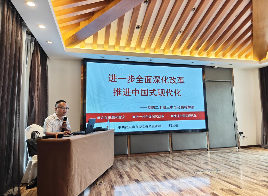 活动中,参加人员共同聆听中共武夷山市委党校高级教师柯龙福老师作的《进一步全面深化改革推进中国式现代化——党的二十届三中全会精神解读》专题报告,体验了八段锦、非遗制茶、宋代点茶等传统技艺之韵。