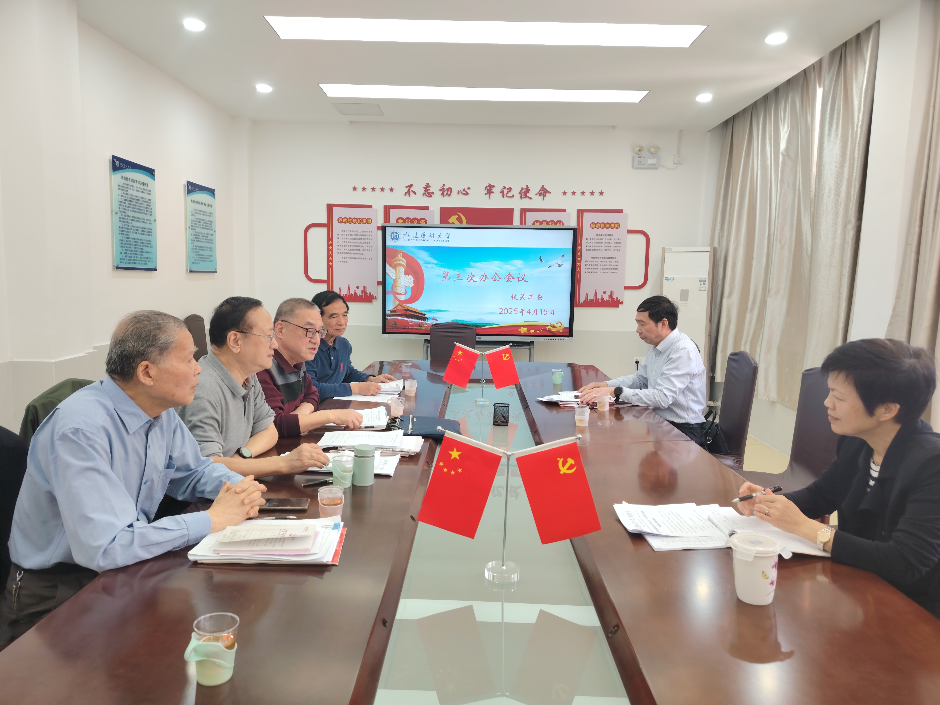 2025年4月15日上午,校关工委召开2025年第三次办公会议,研究部署校关工委2025年第二季度重点工作。校关工委副主任兼秘书长崔霖主持会议,副主任曾玉水、唐明生、李元芳及离退休党委负责人参加会议。